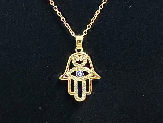 Gold Hamsa Hand w/ Evil Eye Necklace