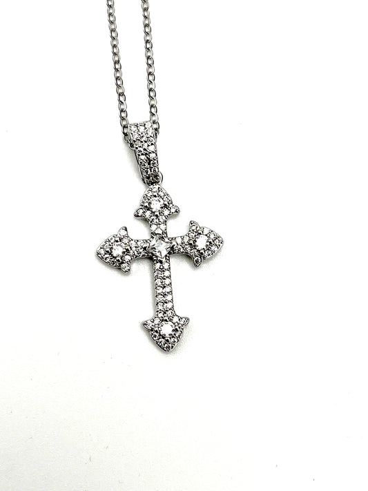Vintage style Silver Rhinestone cross Necklace